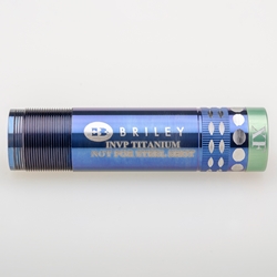 The Ultimate target choke. The Briley Titanium extended chokes are made from lightweight titanium material to reduce muzzle weight and utilize the exclusive Briley Spectrum colored bands for easy identification. The highly polished interior as well as the perfect internal geometry produce very consistent patterns and minimize fliers. In addition to their light weight, Briley Titanium chokes are easy to clean because carbon and wad plastic does not stick to titanium like conventional steel chokes. Not recommended for steel shot.